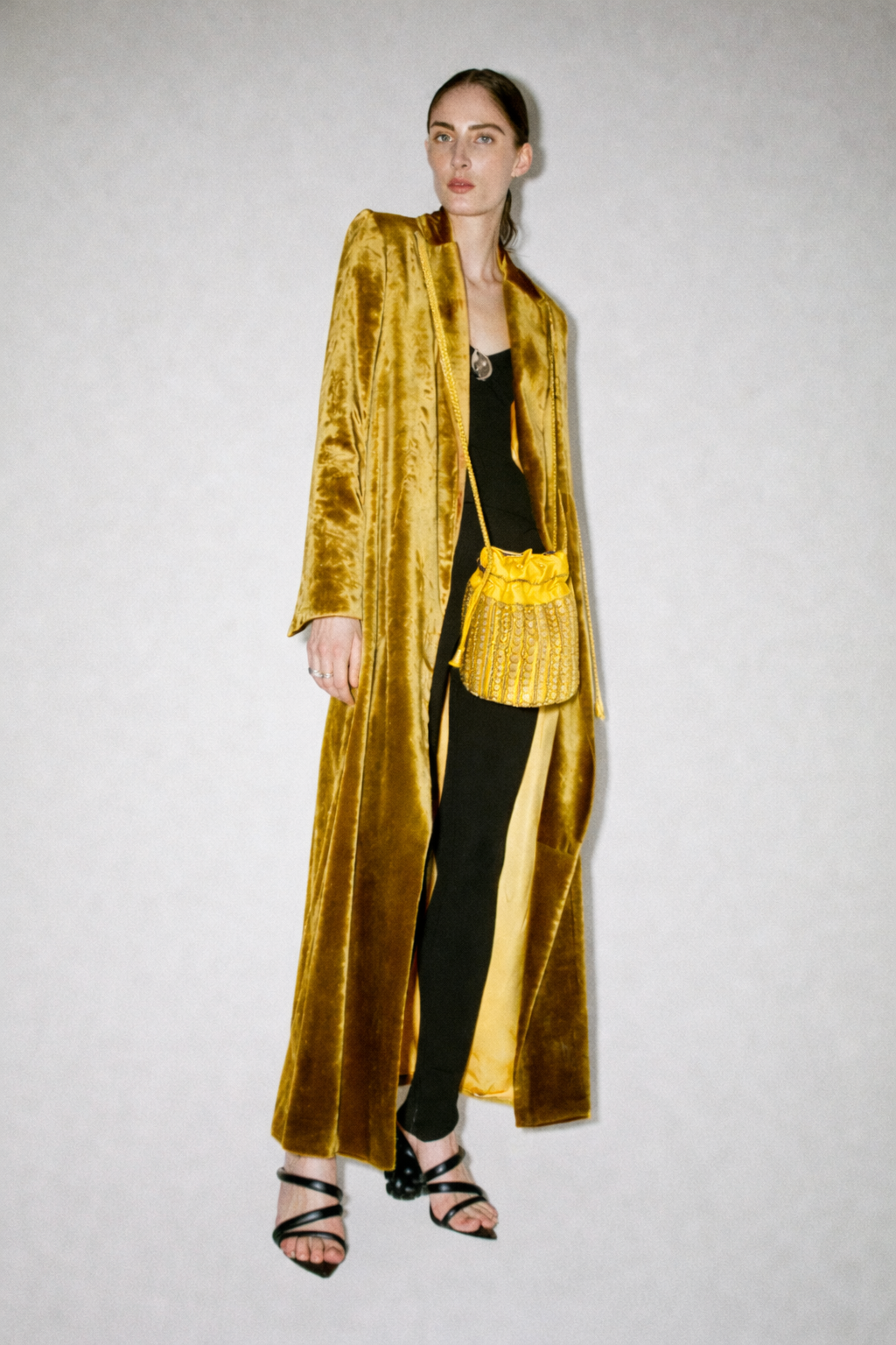 this embroidered potli is pure elegance with a twist. vibrant yellow fabric, detailed gold beading, and mirror accents that catch the light in the prettiest way. it’s giving timeless, festive, and effortlessly chic.